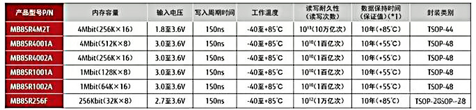 并行接口存儲(chǔ)器為采用TSOP或SOP封裝的256Kbit至4Mbit的產(chǎn)品,工作時(shí)的電源電壓為3.3V,但MB85R4M2T能夠在1.8V-3.6V的大范圍內(nèi)進(jìn)行工作。封裝方式為能夠與SRAM兼容的TSOP或SOP。